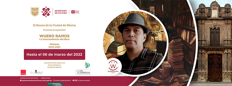 Wuero Ramos «La trascendencia del libro» Exposición presentada por el Museo de la Ciudad de México en colaboración con Aldama Fine Art y El camino Art Found. Disfruta la obra del Mtro. Wuero Ramos a través de esta muestra y rodéate de pinturas dedicadas a los libros y sus atmósferas, creadas con pinceladas sutiles y llenas de color. ► Del 16 de Octubre del 2021 al 13 de Febrero del 2022. #Notelapuedeperder
